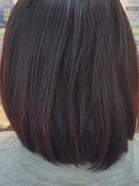 염색한 듯 안 한 듯, 너무 티 안 나게 톤 다운되니까 새치가 눈에 띄지 않고 훨씬 자연스러워 보였어요.