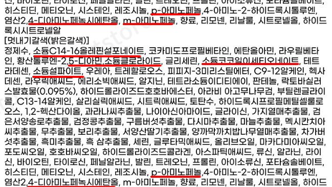염색약이나 일부 염색샴푸에 들어있는