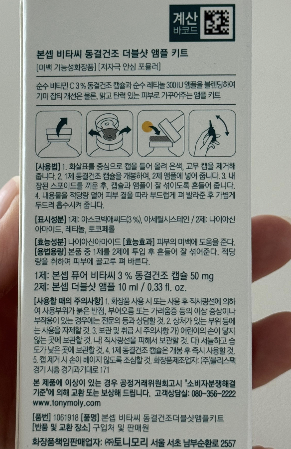캡슐 + 앰플 + 스포이드 구성으로 들어있었어요.